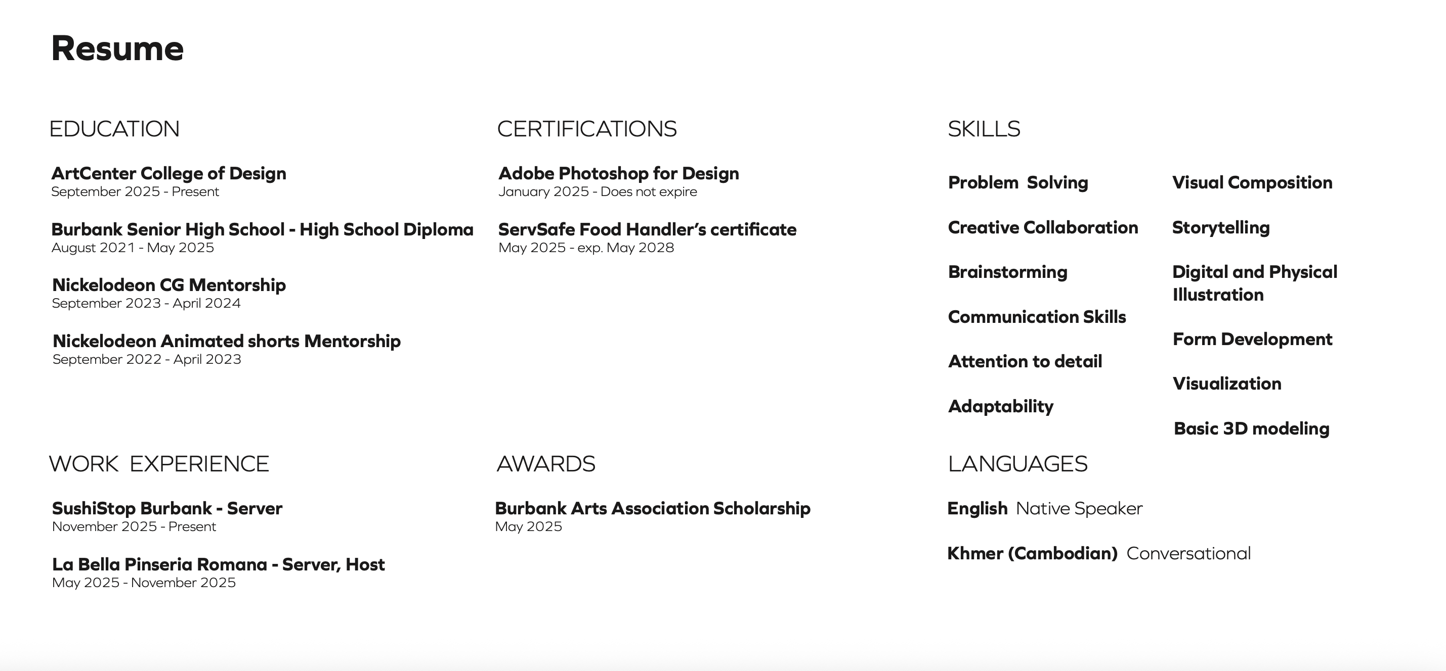 Moving forward, I am interested in the future of mobility as it relates to new forms of mobility in everchanging environments. My goal is to continue refining both my technical skills and creative voice in a rigorous and challenging environment. I am motivated to contribute thoughtful, well-developed design work and to grow. By building on my background in animation, academic training, and early industry exposure, I aim to develop into a designer who can thoughtfully shape the future of transportation.