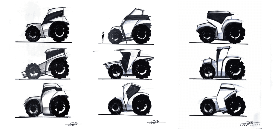 This is an electric utility vehicle designed for usage on vineyards. It performs tasks such as administering pesticides, harvesting crops, all while navigating narrow rows. The compact design is optimal for energy usage, control, and efficiency.